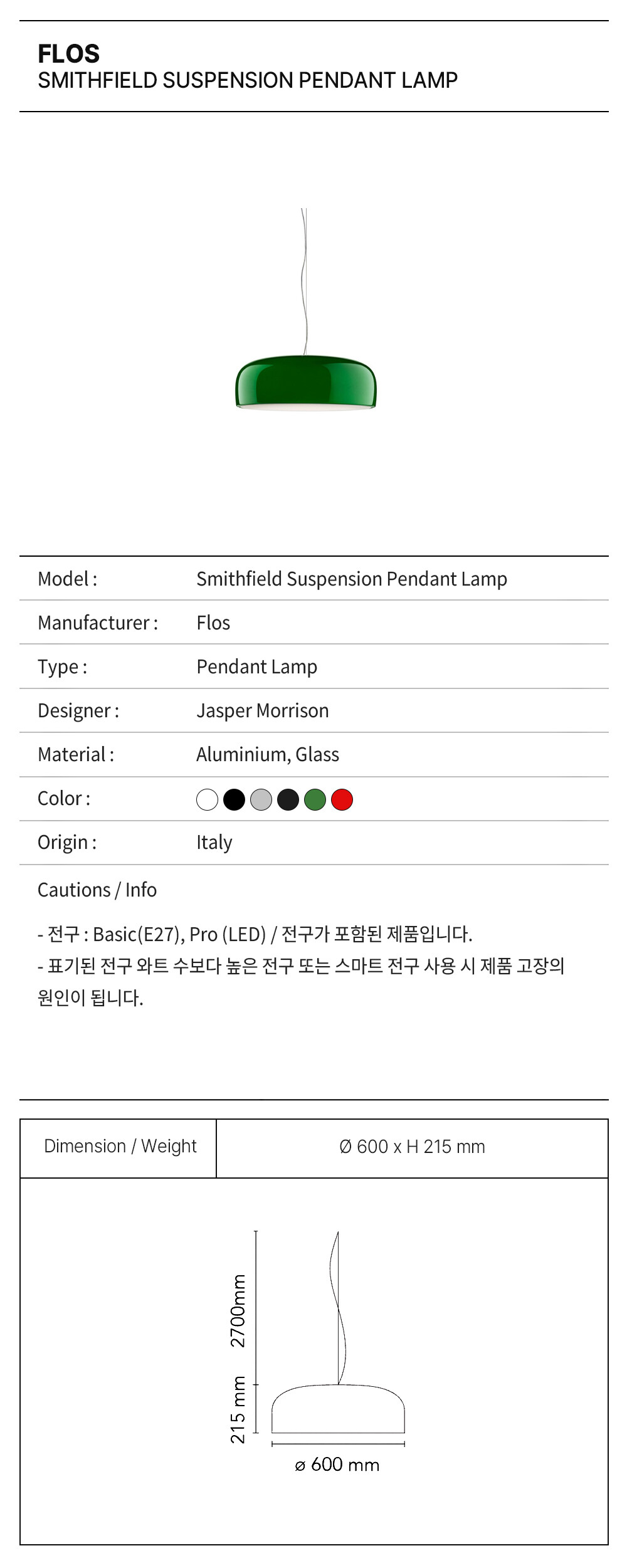플로스 스미스필드 실링 펜던트 조명 / Flos Smithfield Ceiling Pendant Lamp