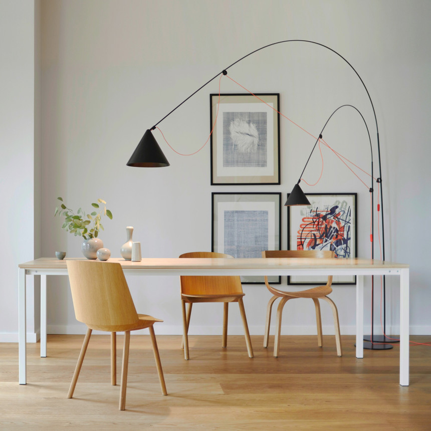 Stefan Diez의 대표적인 작품 중 하나인 미스가르드의 AYNO 조명 시리즈는 심플하면서도 조절 가능한 조명에 대해 현대적으로