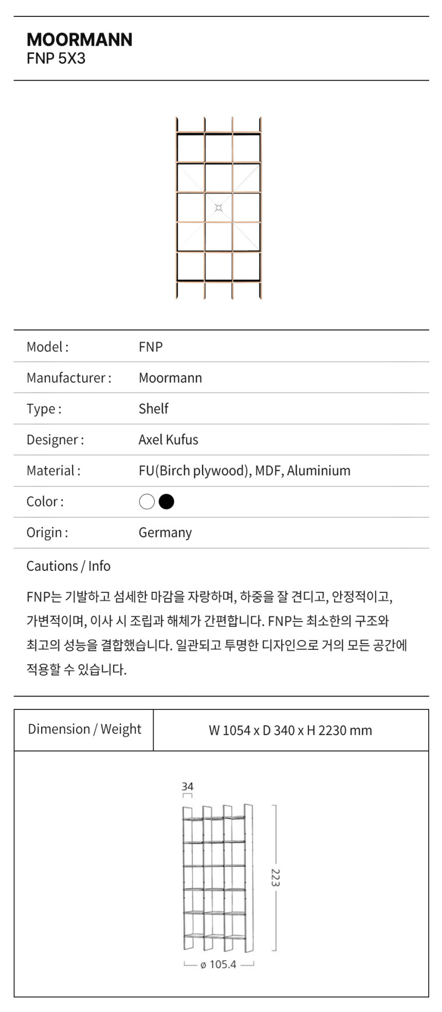 무어만 FNP 4 (5x3) 책장 / Moormann FNP Shelf System (105x223cm)