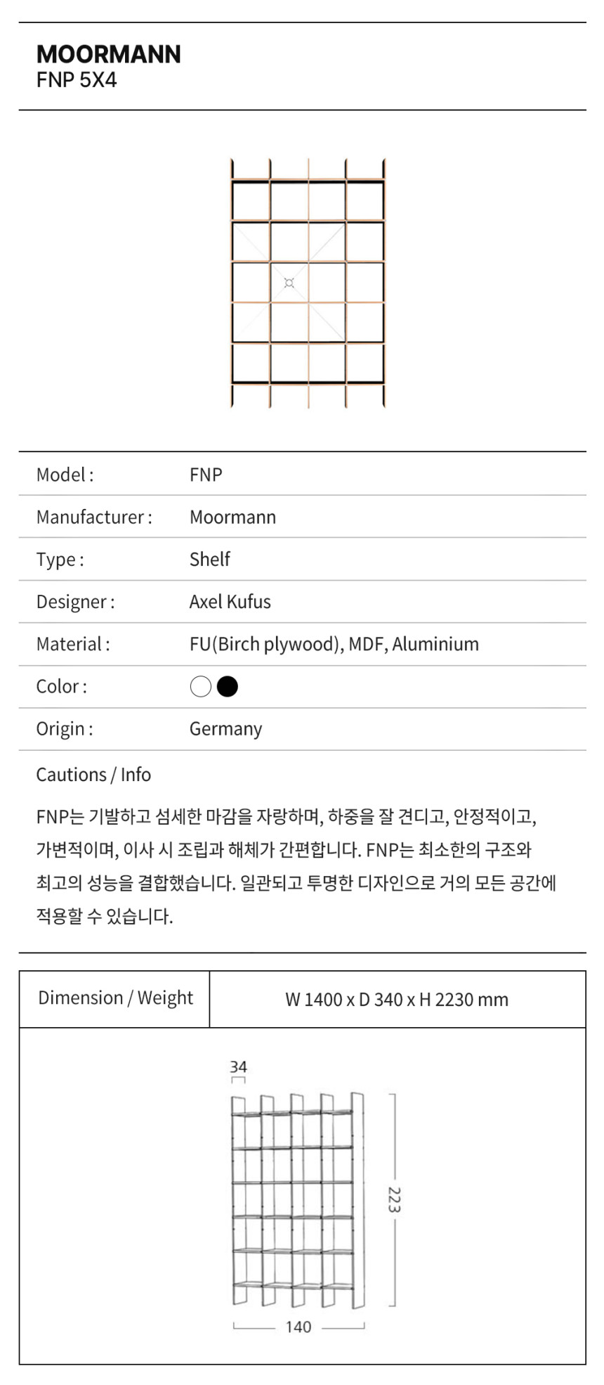 무어만 FNP 4 (5x4) 책장 / Moormann FNP Shelf System (140x223cm)
