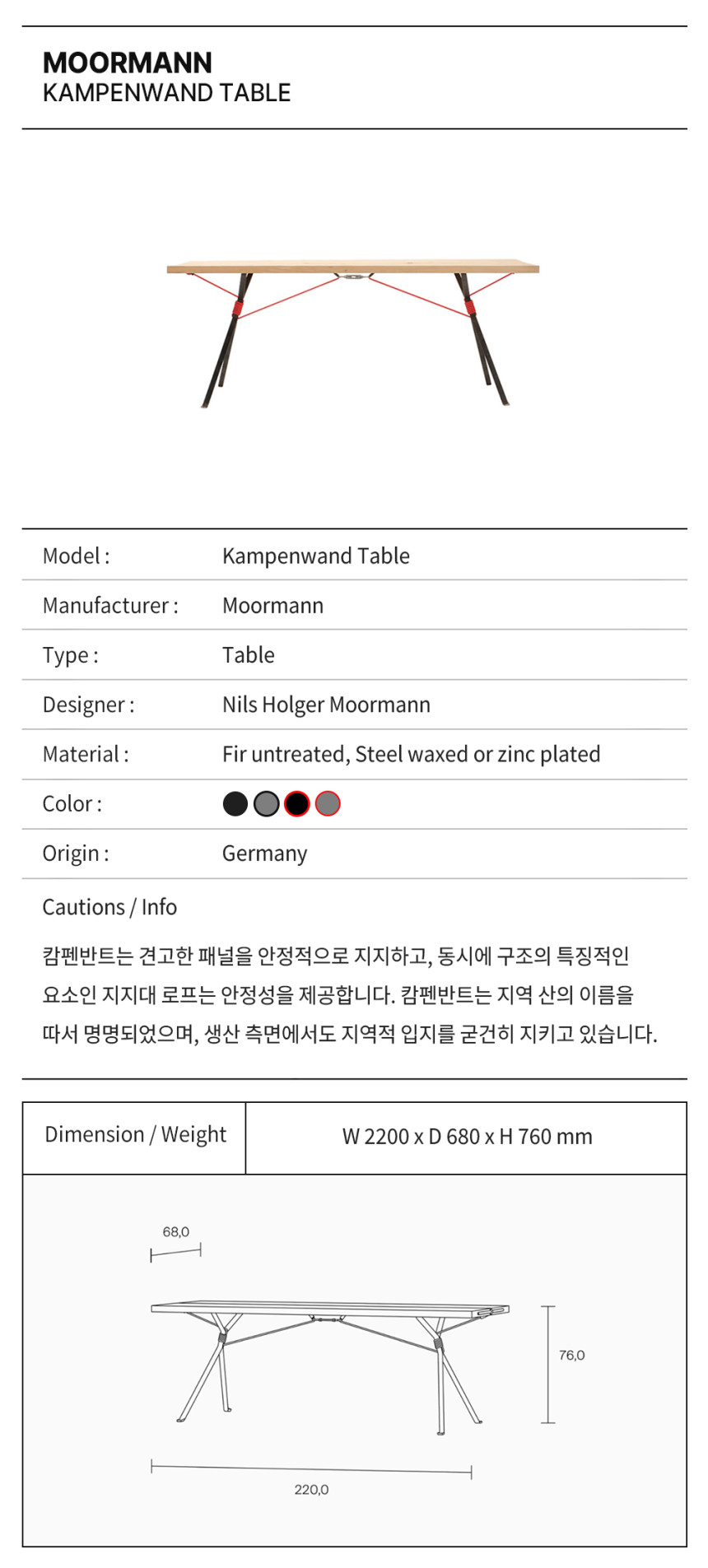 무어만 캄펜와드 테이블 220x68cm / Moormann Kampenwand Table