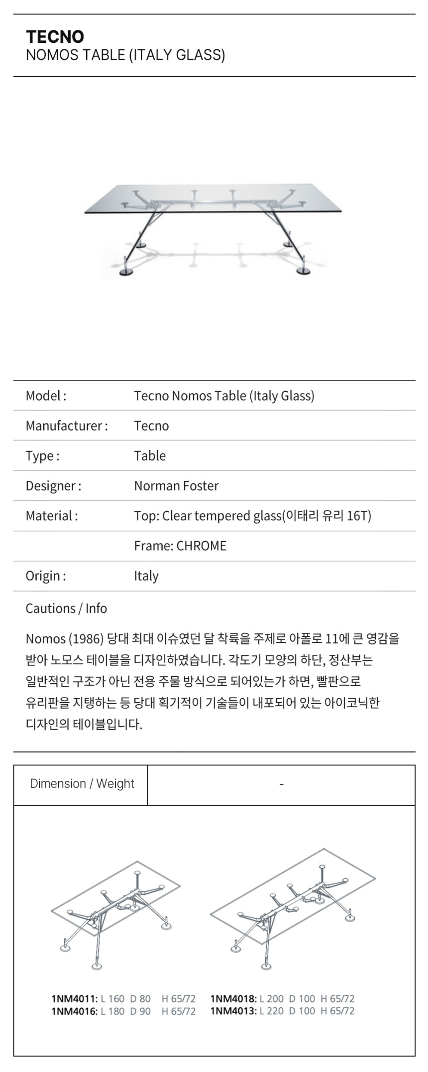 TECNO NOMOS TABLE (이태리 유리 상판)