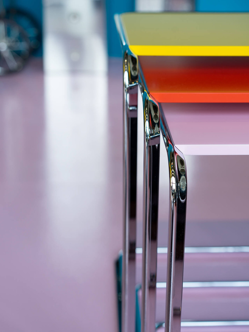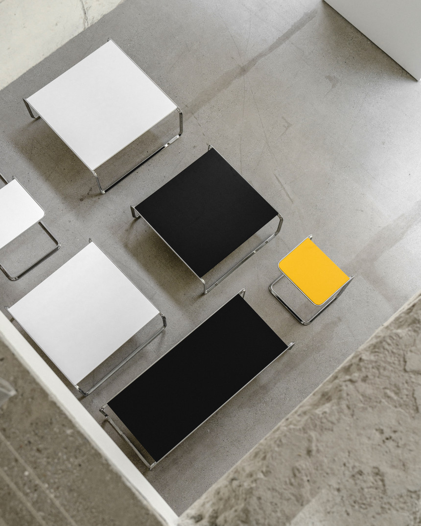 크기가 서로 다른 K3A, K3B, K3C 모델로 구성되며, 소파나 침대, 책상 옆에 하나만 두고 사이드 테이블로 사용하거나 여러 개를 한 번에 포개어 놓고 조명이나 화분, 찻잔, 책 등을 동시에 올려놓는 등 다용도로 쓰기에 적합한 가구입니다. K3 테이블은 캔틸레버 구조를 차용했으며 텍타의 특수 강철관인 튜브 오블리크tube oblique(사선으로 비스듬하게 설계한 프레임)를 사용해 우아한 디자인을 갖추었습니다. 테이블 상판은 라커드 마감이며, 독일 RAL의 스페셜 컬러 차트에서 골라 커스텀 제작이 가능합니다.