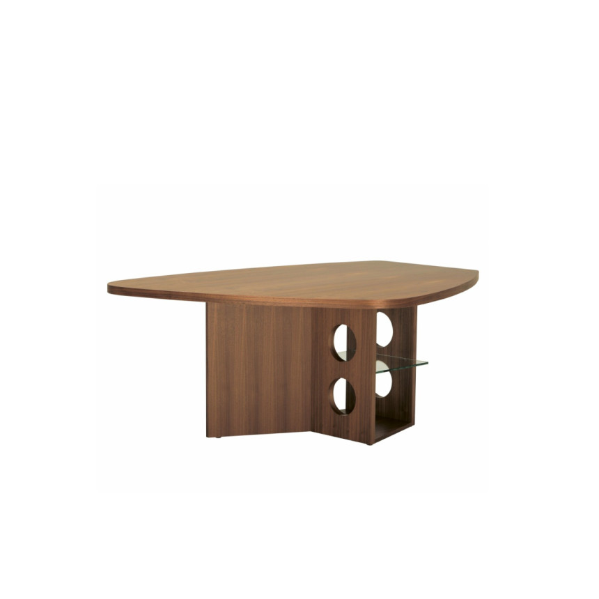 쉽게 찾아볼수 없는 비대칭적이고 조형적인 상판이 특징인 M21 테이블은 오픈된 공간 한가운데에 배치하거나 벽에 붙여 놓는등 다양한 연출이 가능한 점이 특징이며 다리 한 쪽에는 유리 선반이 있어 수납 효과가 있습니다.