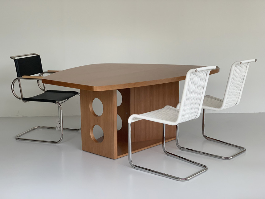 회의, 개인서재, 다이닝 테이블 등 여러가지 용도로 사용 가능한 텍타의 M21 테이블은 1990년 장 프루베 (Jean prouve)의 디자인적 특징을 모티브로 텍타의 인하우스 디자인 팀에서 디자인한 제품입니다.